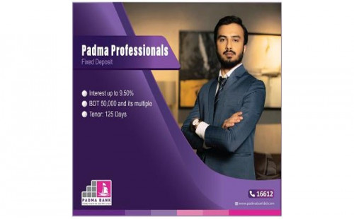 ১২৫ দিনের স্থায়ী আমানত নিয়ে এলো পদ্মা ব্যাংক