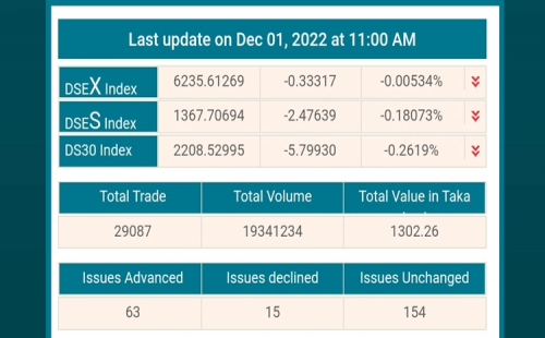 দাম বাড়ার পাল্লা ভারী, তবু সূচক নিম্নমুখী