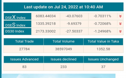 আজও পতনে শেয়ারবাজার