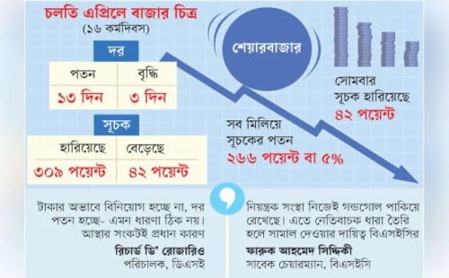 এপ্রিলজুড়ে দর পতন, আস্থা ফেরানোর উদ্যোগ নেই