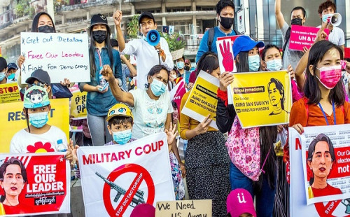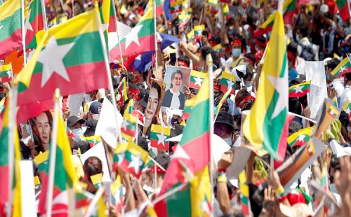 আবারও বিক্ষোভে নেমেছে মিয়ানমারের হাজারো জনতা