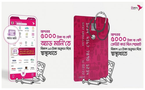 বিকাশ অ্যাড মানি ও ক্রেডিট কার্ডে বিল পরিশোধে অনুদান যাবে স্বাস্থ্যখাতে