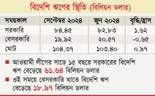 ৩ মাসে সরকারের বিদেশি ঋণ বেড়েছে ১৬২ কোটি ডলার