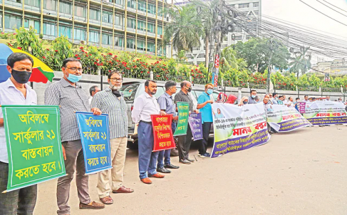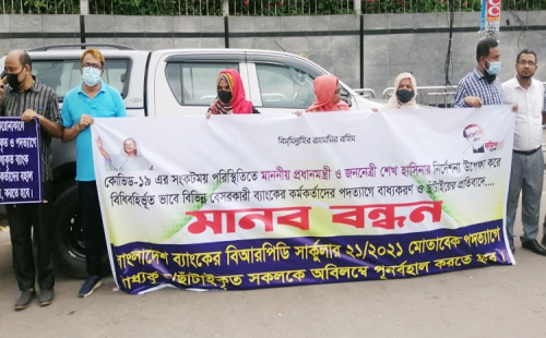 চাকরি ফেরত চেয়ে ব্যাংকারদের মানববন্ধন