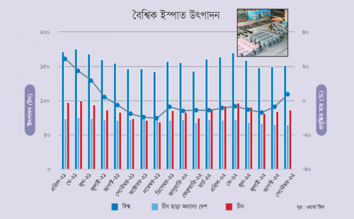 প্রতিবন্ধকতা সত্ত্বেও ইস্পাতের বৈশ্বিক উৎপাদন ৩.৭% বেড়েছে