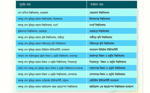 শেখ পরিবারের নামে থাকা ১৩ বিশ্ববিদ্যালয়ের নাম পরিবর্তন