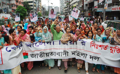 বেগম খালেদা জিয়ার মুক্তির দাবিতে মহিলা দলের বিক্ষোভ